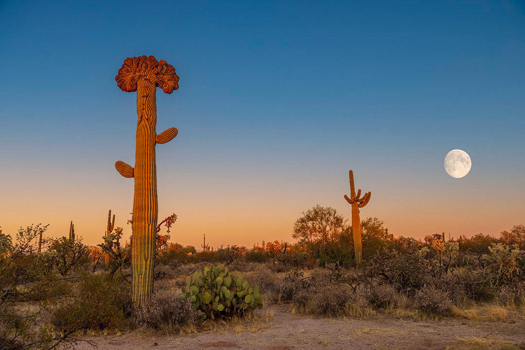 Crested Saguaro and Moon