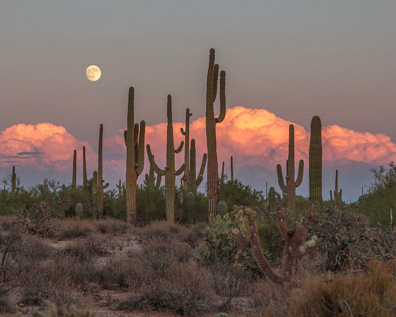 Moon Sunset and fluffy clouds